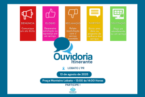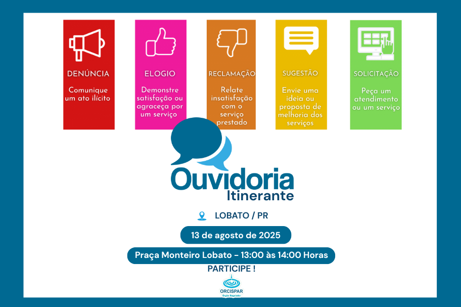 No dia 13 de agosto, a Ouvidoria Itinerante do ORCISPAR estará presente na Praça Monteiro Lobato, no município de Lobato – PR.